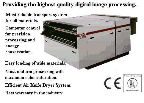 simultaneous processing of roll and sheet material. An additional feature is a light-tight feed compartment. The take-up system allows processed material to be spooled onto take-up flanges. Quality Craftsmanship...